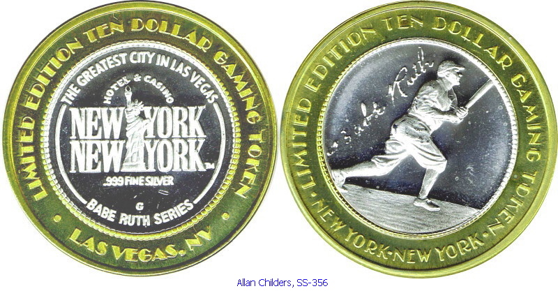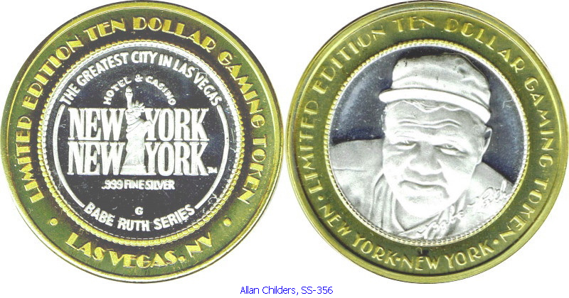 Design side: Babe Ruth Bust with Signature, rotated die 10 degrees Right —