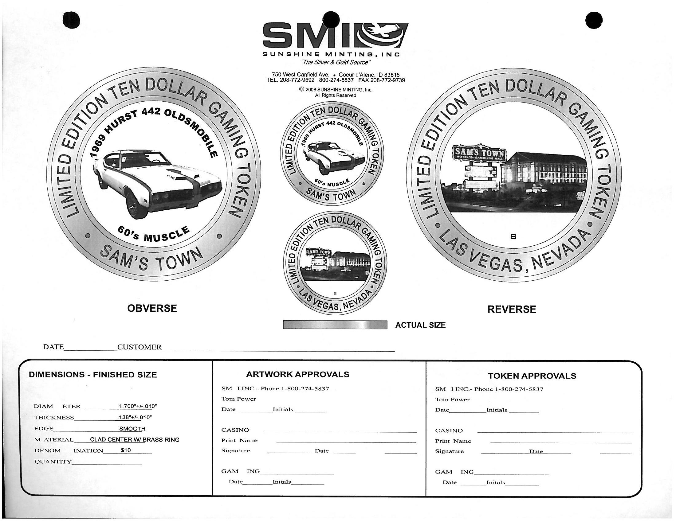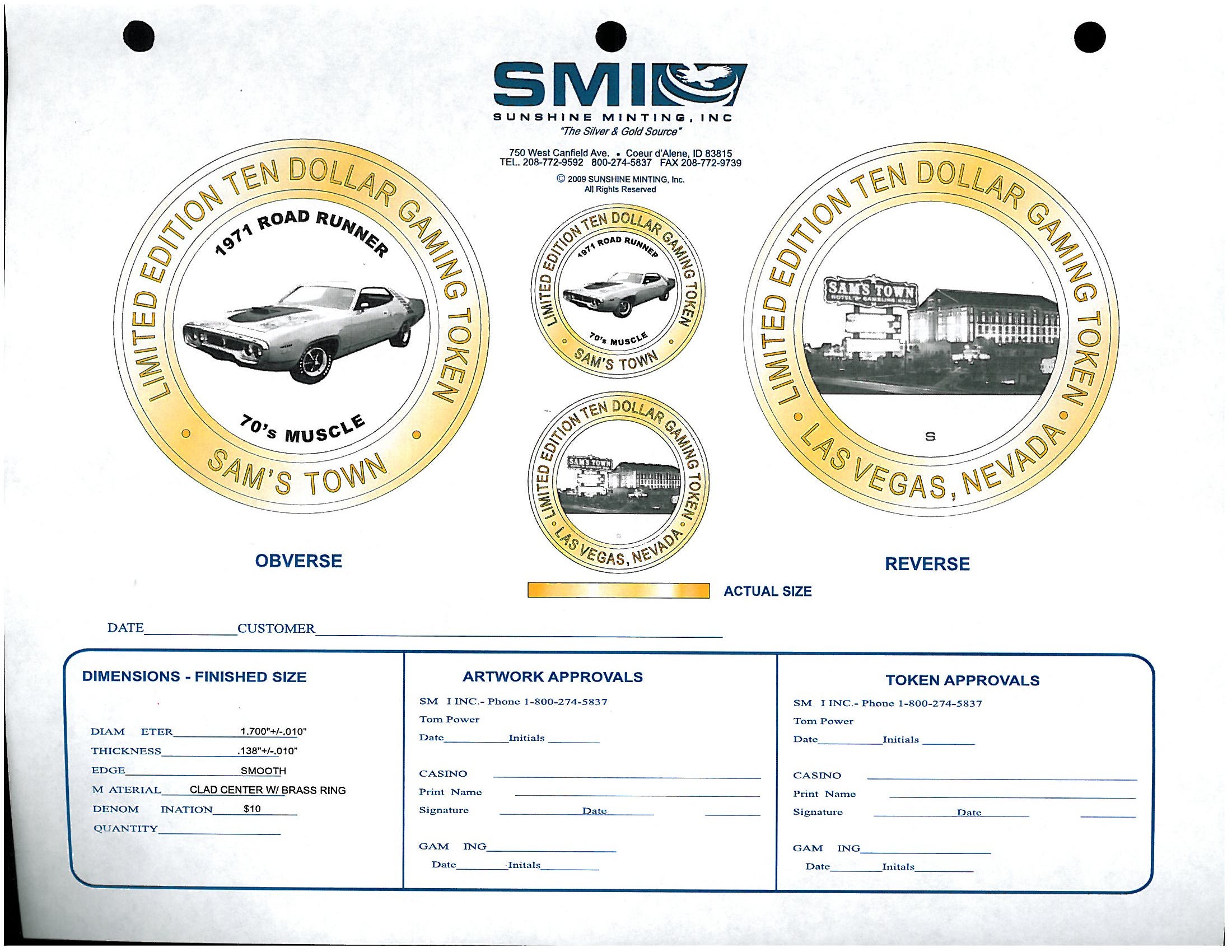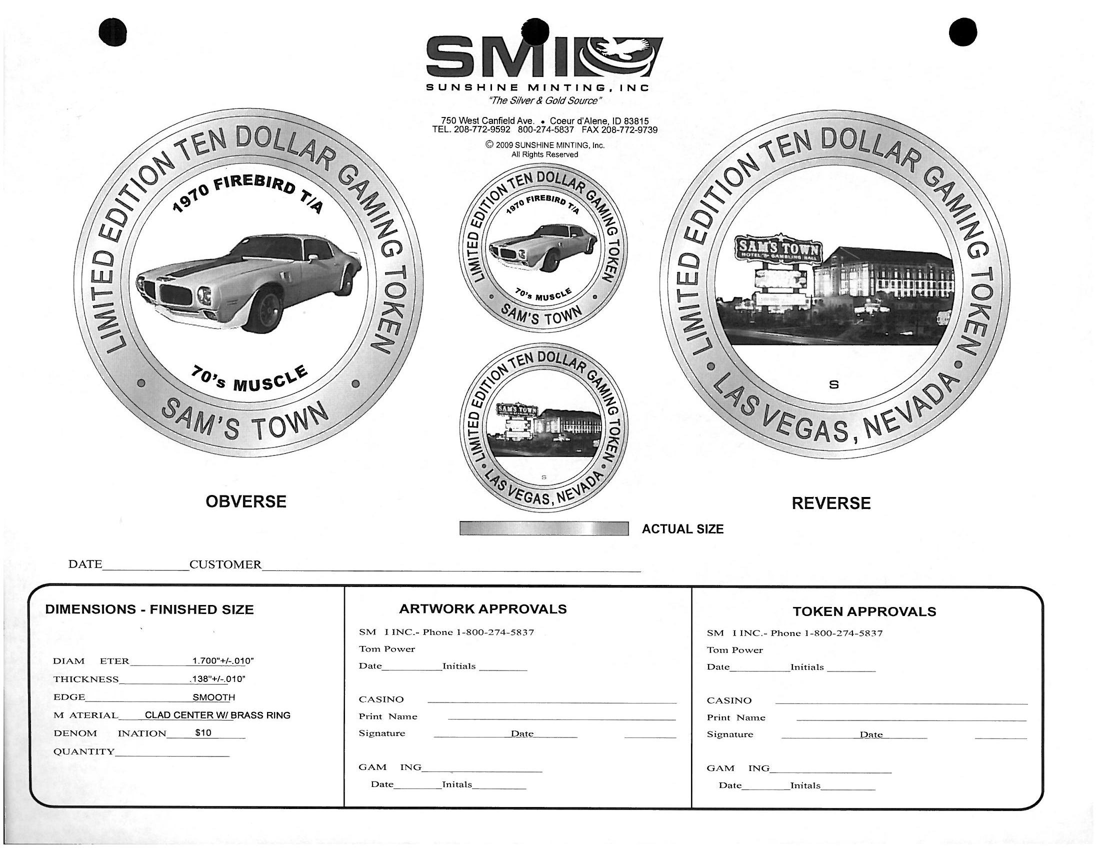 Four Queens Carmen Amaya $300 Strike - Shaun Webster had the prototype delivered on 2-14-11, and the gaming prototype was delivered 2-15-11. They are in the process of minting the strikes, and then they will be sent for the gold plating. It looks like we can expect them to be back in Vegas sometime during the first two weeks of March. They should be able to give us a fairly accurate delivery date by the first of March.