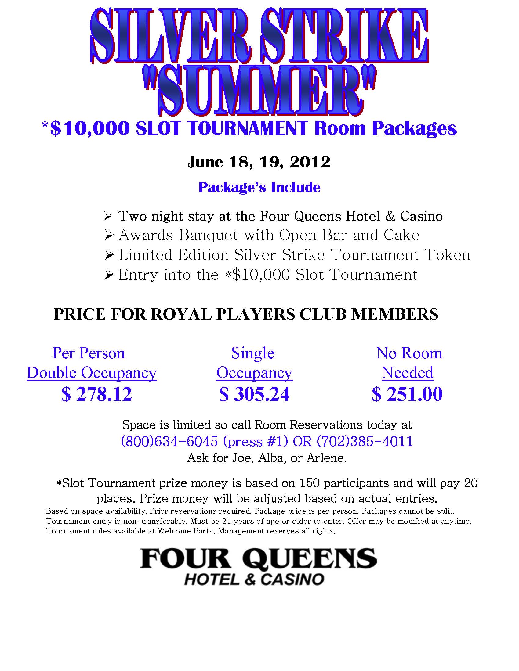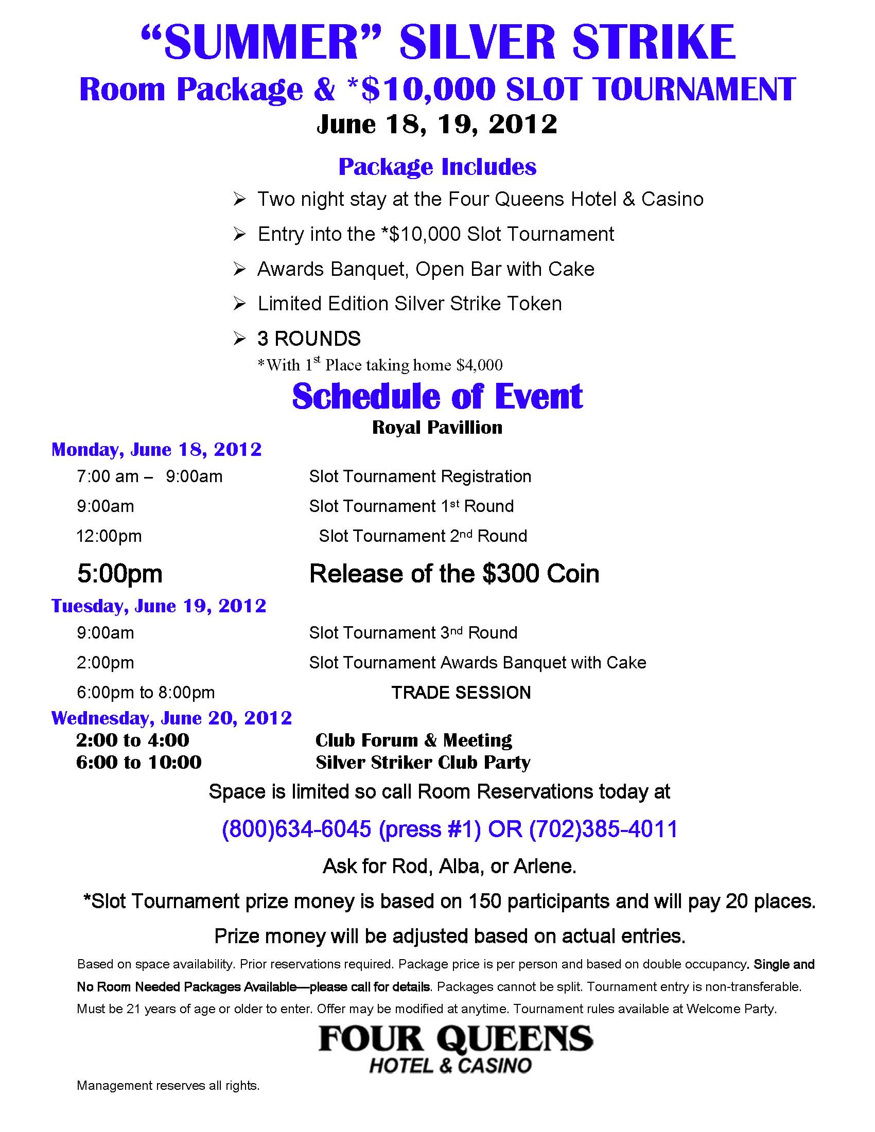 Monday and Tuesday June 18, and 19, 2012: Four Queens Summer Silver Strikers Slot Tournament