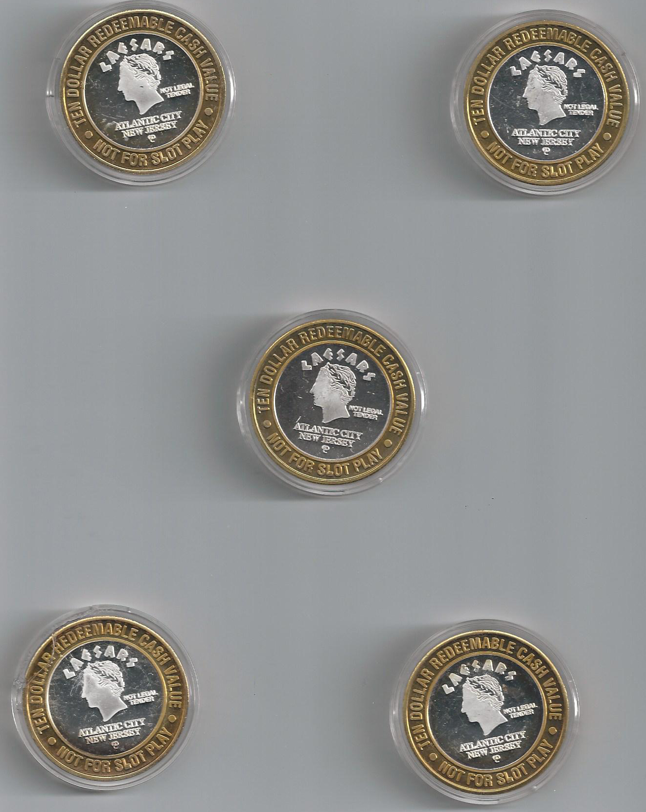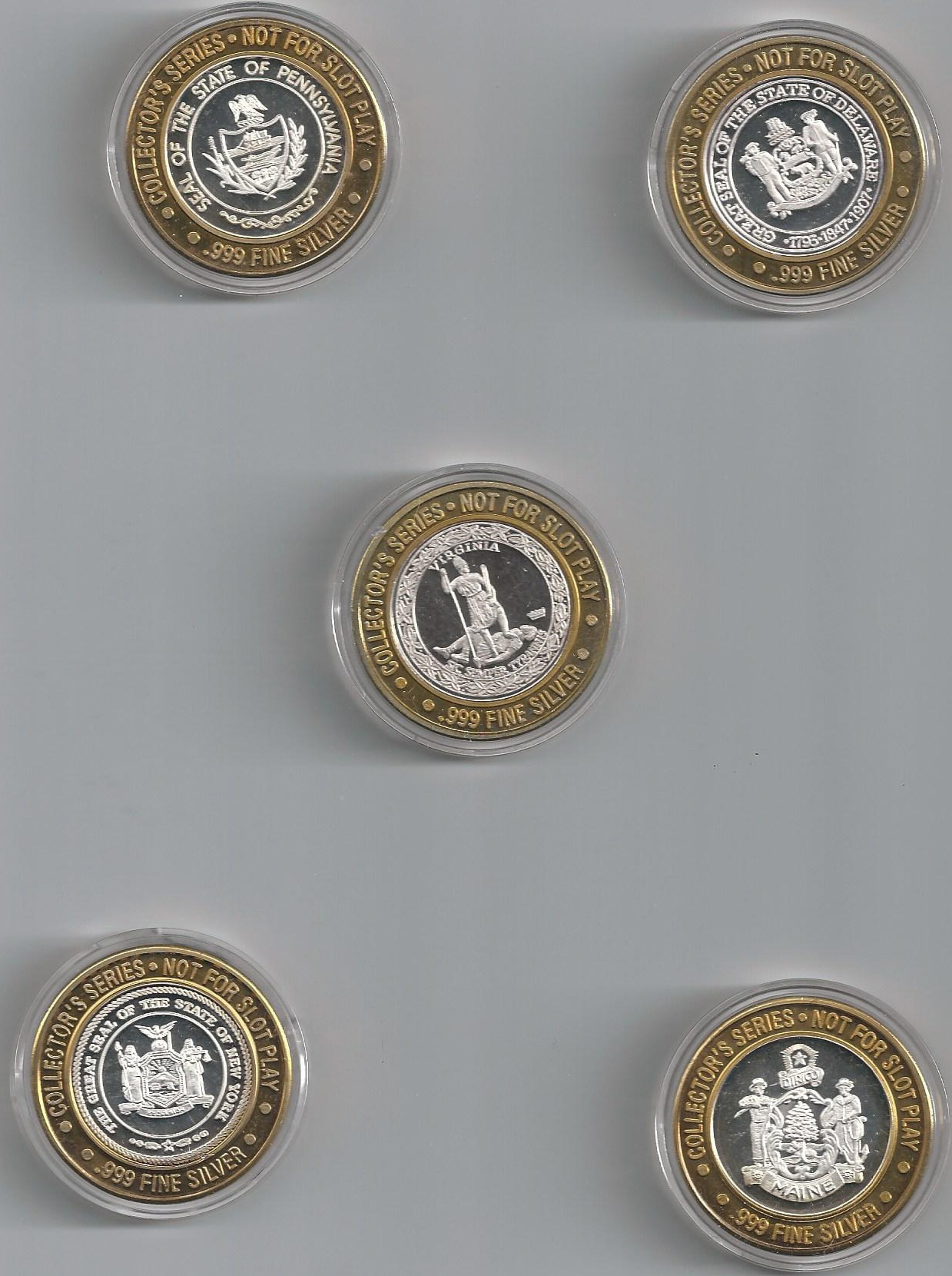 The club will auction 5 Caesar's Atlantic New Jersey strikes during the club meeting on 19 June 2013. Strikes are the States of New York, New Jersey, Maine, Pennsylvania, and Virginia, The strikes were donated to the Club by Jeff Conners Aristocrat Technologies. Click on the links below to see the strike images.