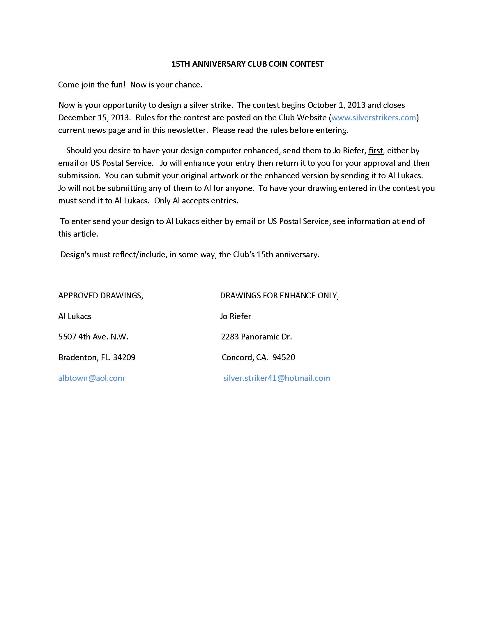 THE SILVER STRIKERS CLUB COIN CONTEST