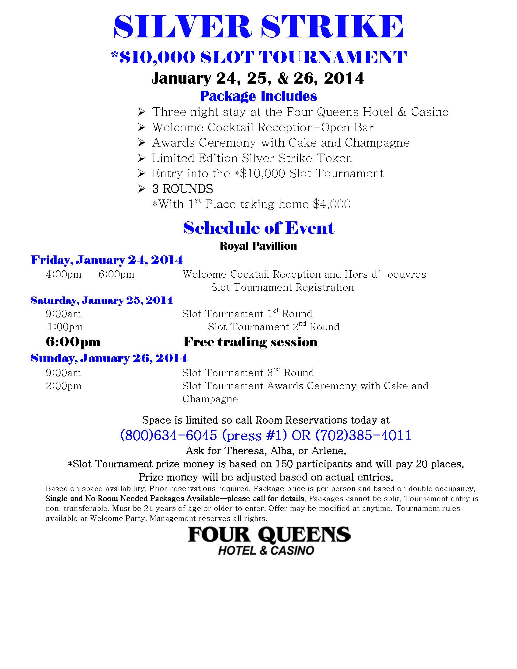 We are looking forward to seeing everyone at the Four Queens in a few short weeks.