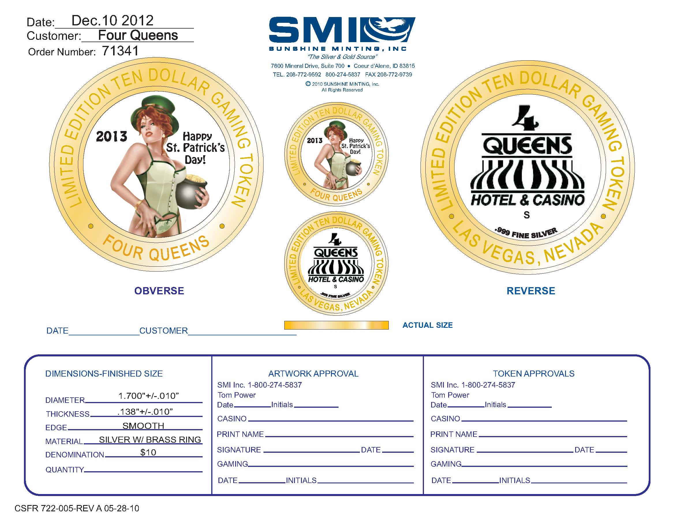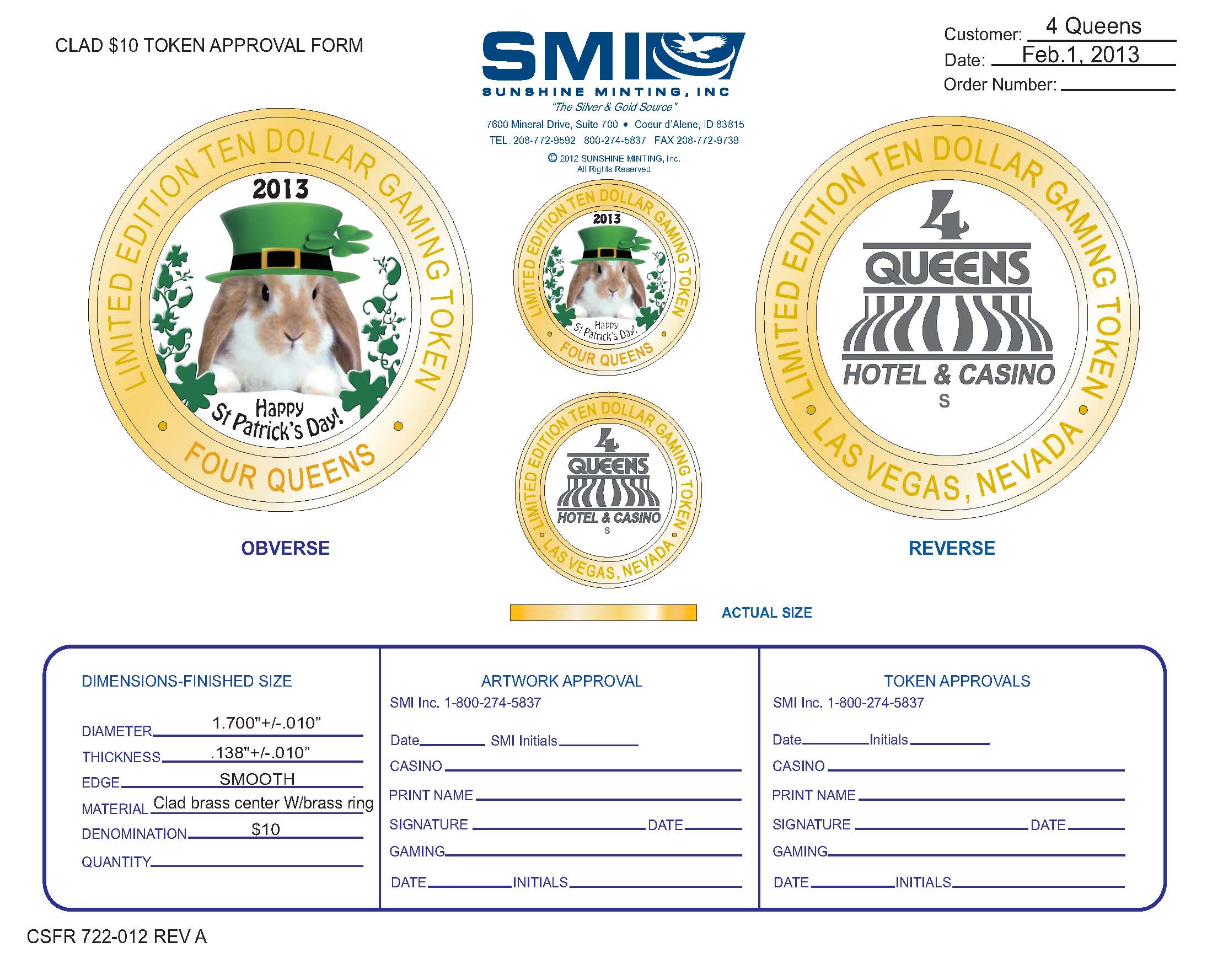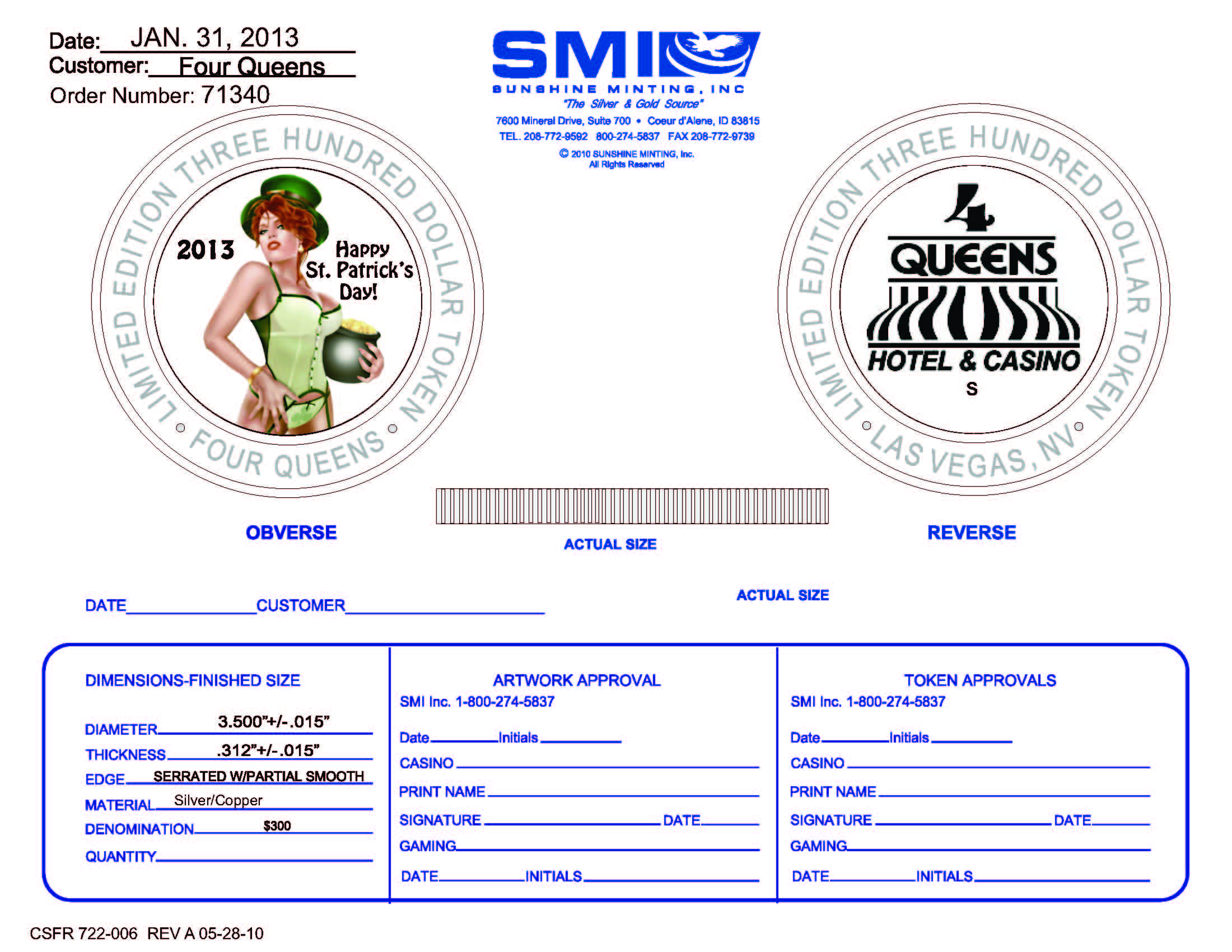 Good news - The $300 St. Patrick's strike will received by the Four Queens on 28 March 2013.