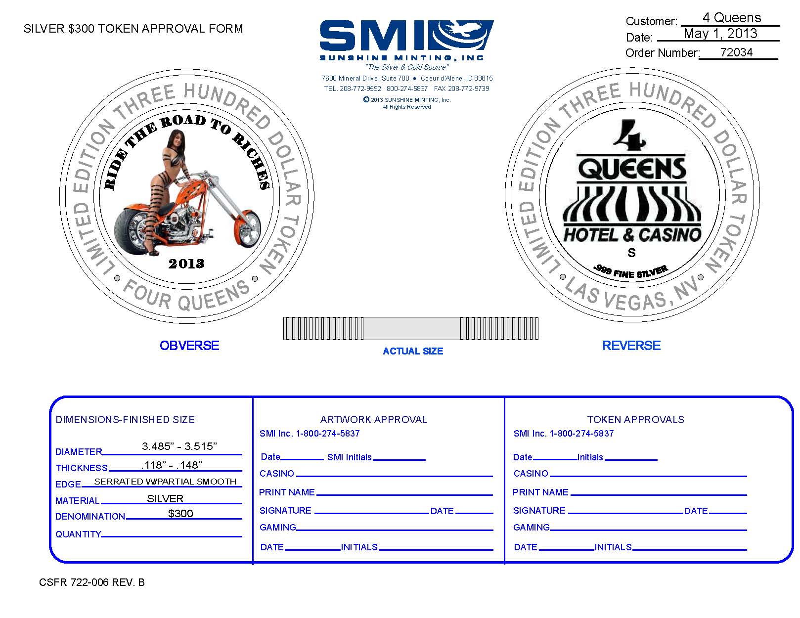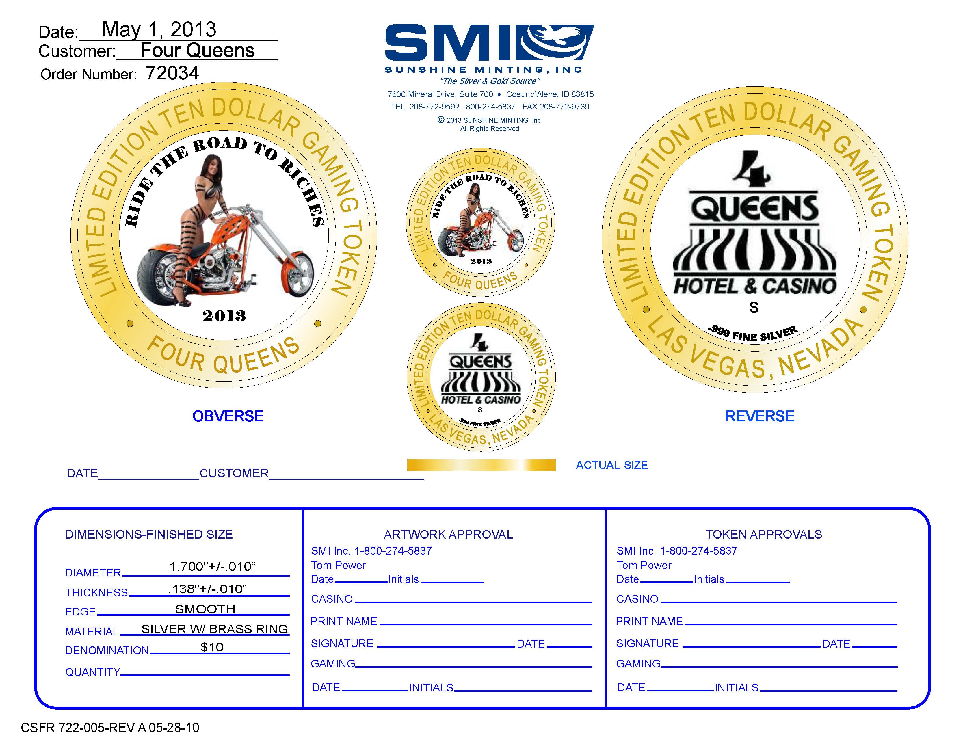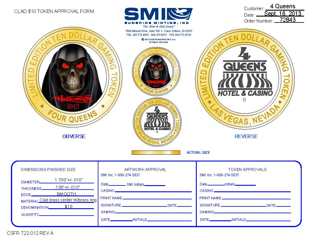If all goes well with the mint the Four Queens red & blue cap strikes will be put in the strike machines on 12th or 13th.