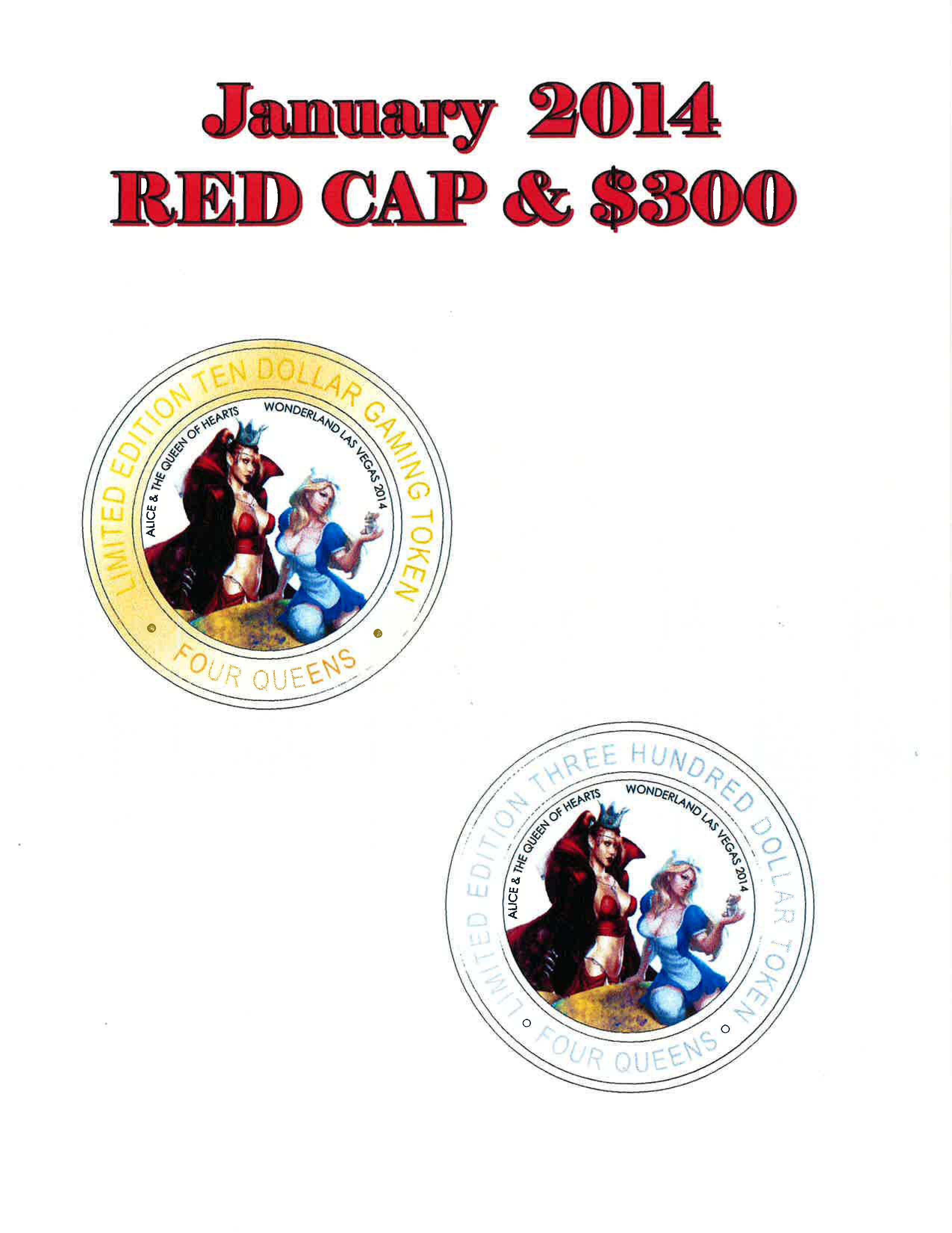 Four Queens should have their new house strikes in the strike machines this weekend. The red cap and blue caps will be in Wednesday or Thursday of this week. Their $300 will be released Saturday January 25th around 5 p.m. after the last round of tournament play. The tournament strike will be given out at the Awards Banquet on Sunday January 27.
