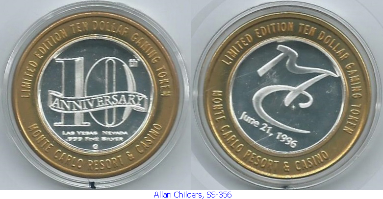 Logo side: 10th Anniversary, Monte Carlo Resort & Casino, Rotated Die 10 to 30 Degrees