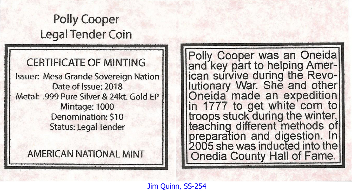 Design side: Oneida Tribe, Polly Cooper - Valley Forge - 1778 —