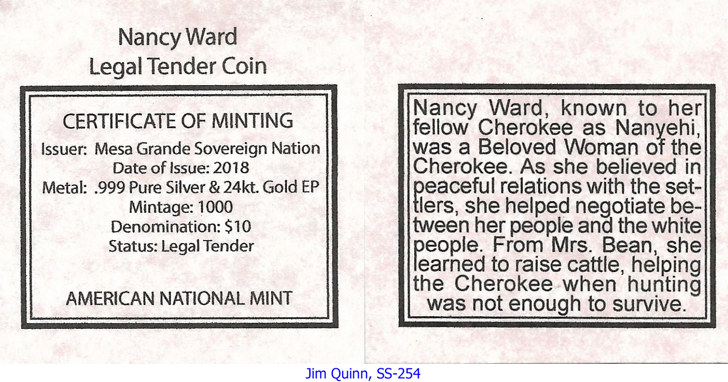 Design side: Beloved Woman of the Cherokee, Nancy Ward —
